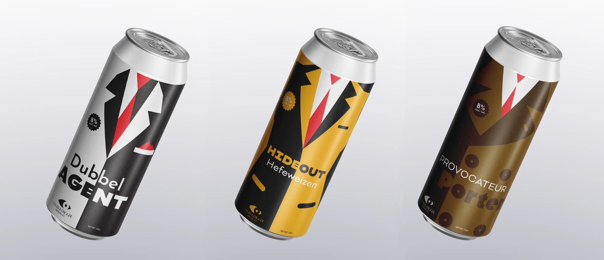 This was a project to create three cohesive beer can labels following a specific theme of spy and espionage. This required a tuned sense of branding and packaging design. I decided to design three interesting labels using graphics of suits that looked like the cans were “wearing” them. Also, using a file folder for the information on the back.